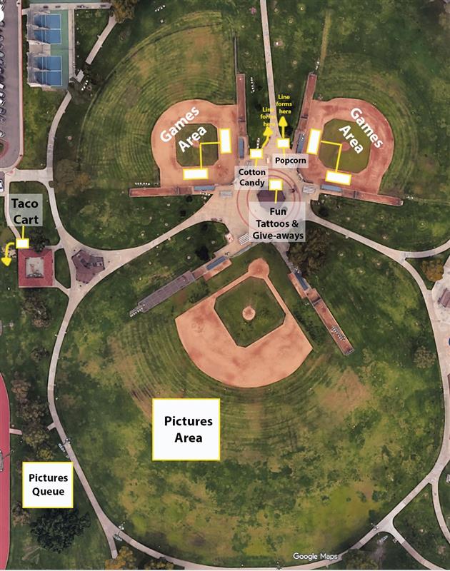 Outfields of Field 1 and 3 will be team picnic areas.